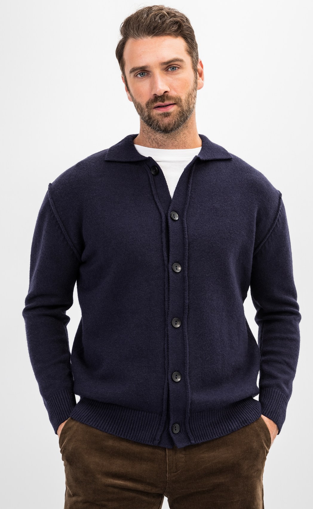 Азбука Мода. Кардиган мужской однотонный F310-0513 тёмно-синий.