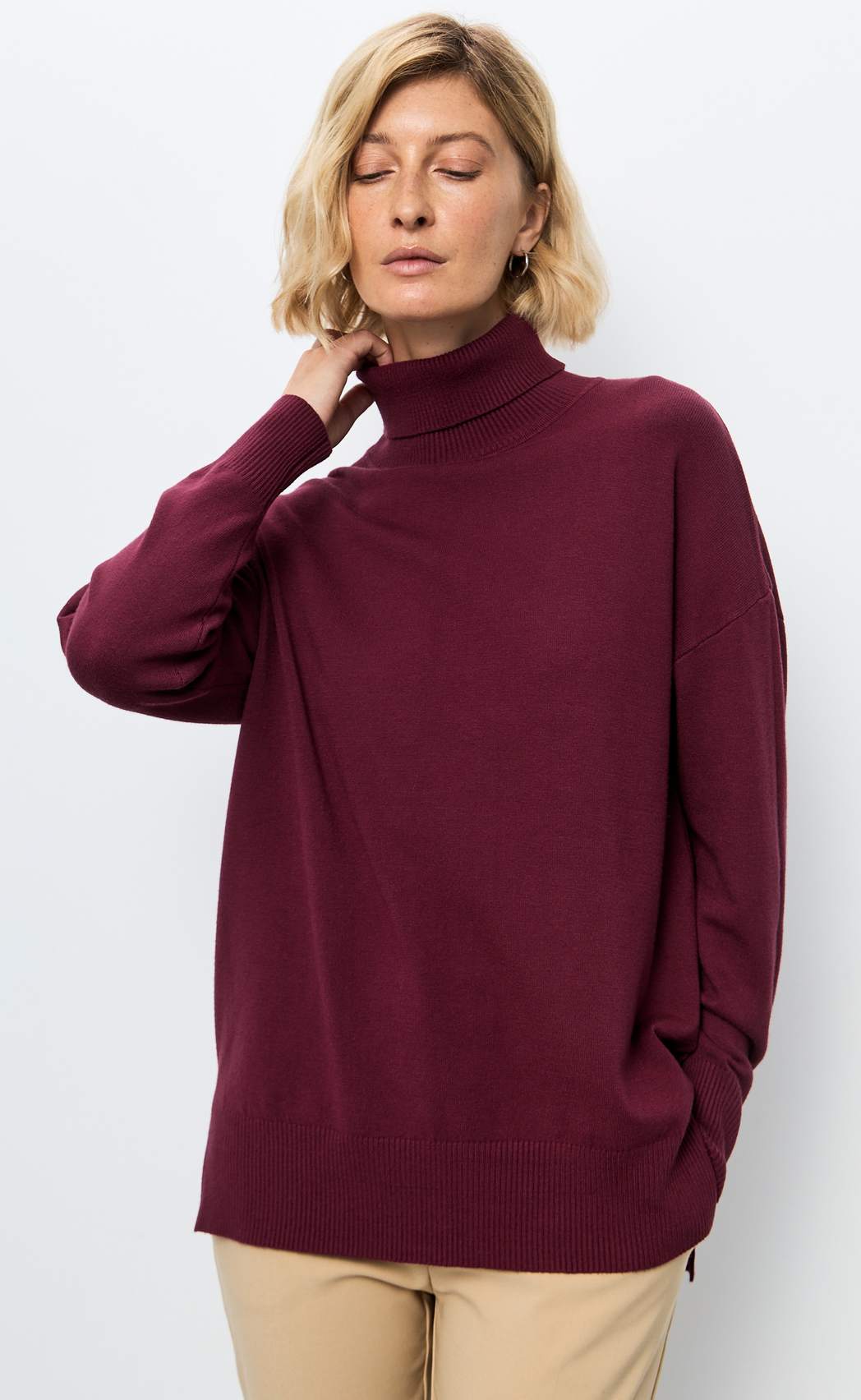 Азбука Мода. Водолазка женская оверсайз со спущенным плечом F122-1507Rus бордовый.