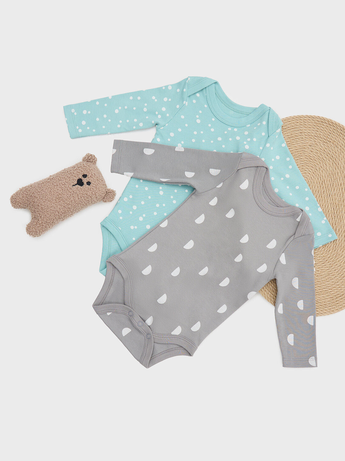 Малышам. горошки на бирюзе +дольки на сером/68-44 (641 руб.).