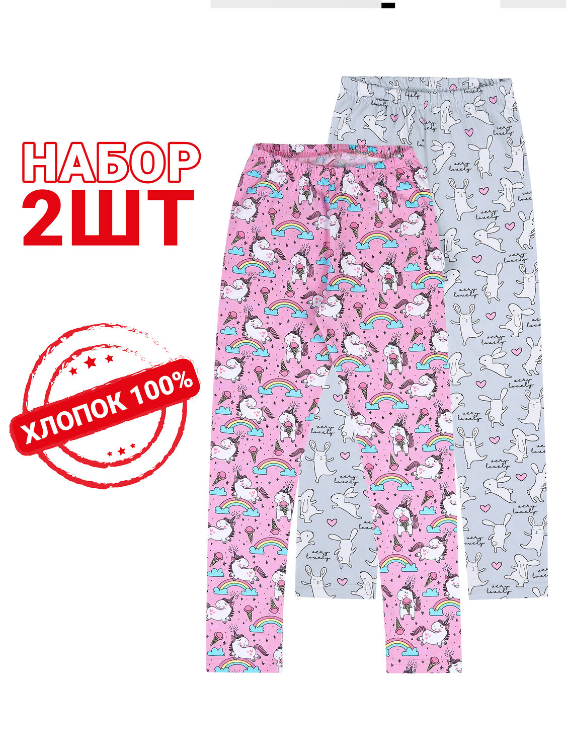 Девочкам. белые кролики на сером+единороги на ярко-розовом/116 (640 руб.), белые кролики на сером+единороги на ярко-розовом/122 (640 руб.), белые кролики на сером+единороги на ярко-розовом/128 (640 руб.)