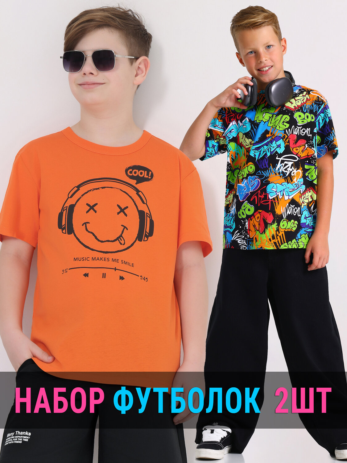 Мальчикам. оранжевый9+яркие надписи на черном / Смайл в наушниках/122 (890 руб.), оранжевый9+яркие надписи на черном / Смайл в наушниках/140 (890 руб.)