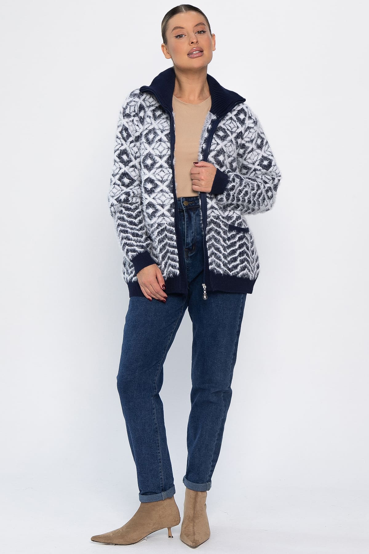 Lady Taiga. Свитер на молнии Сканди НЬЮ (синий) Б14402-20М.