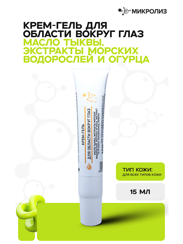Микролиз. Крем-гель для области вокруг глаз масло Тыквы,экстракты морских водорослей и огурца.