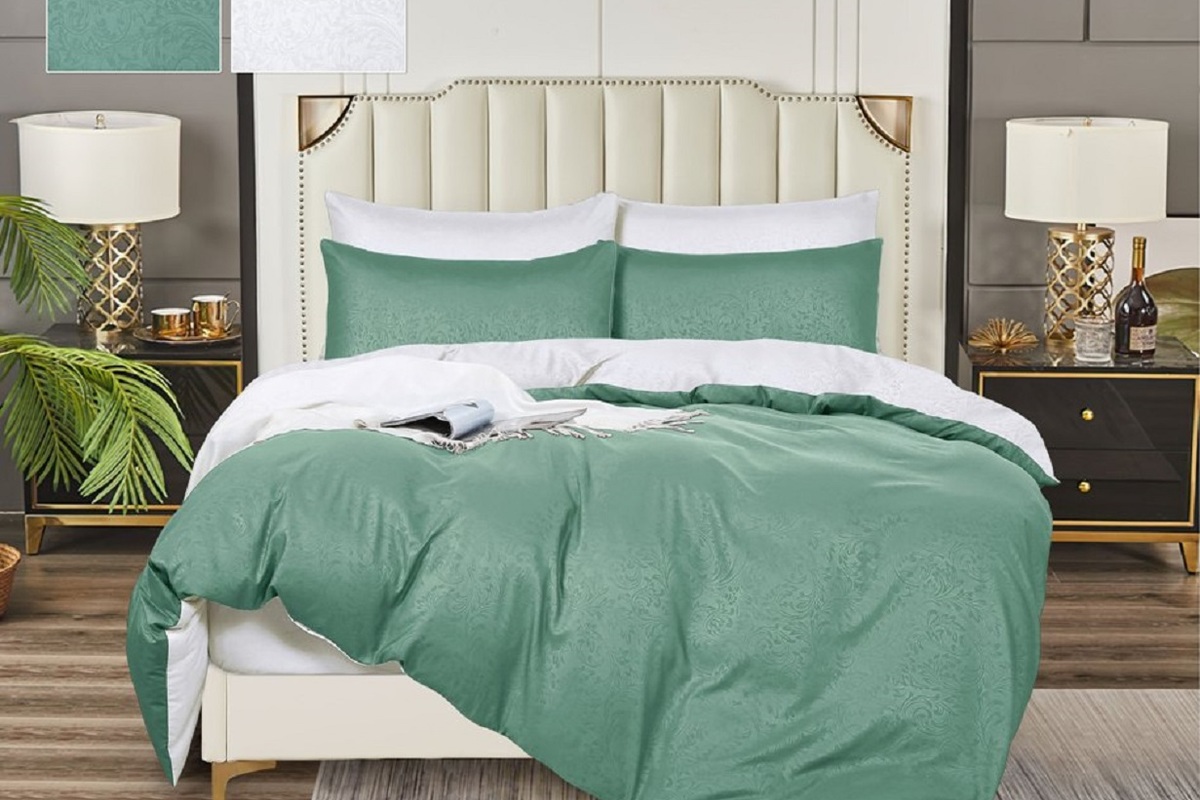 Натали. КПБ Полисатин ПСГ-205 мята/белый.