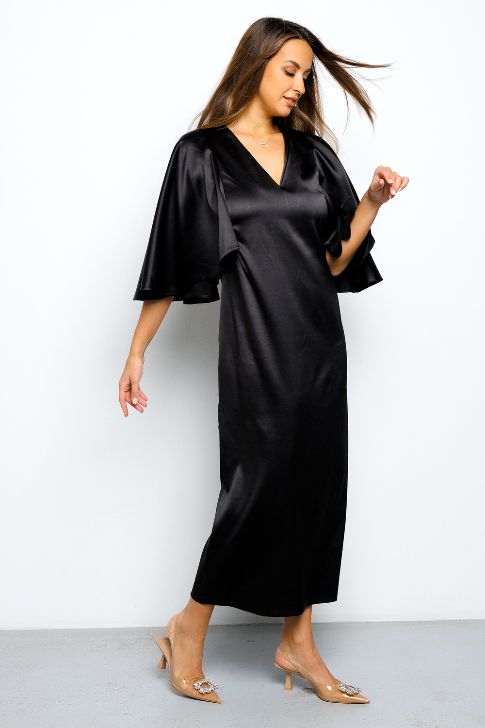 Натали. Платье длинное с воланами 397BLK.