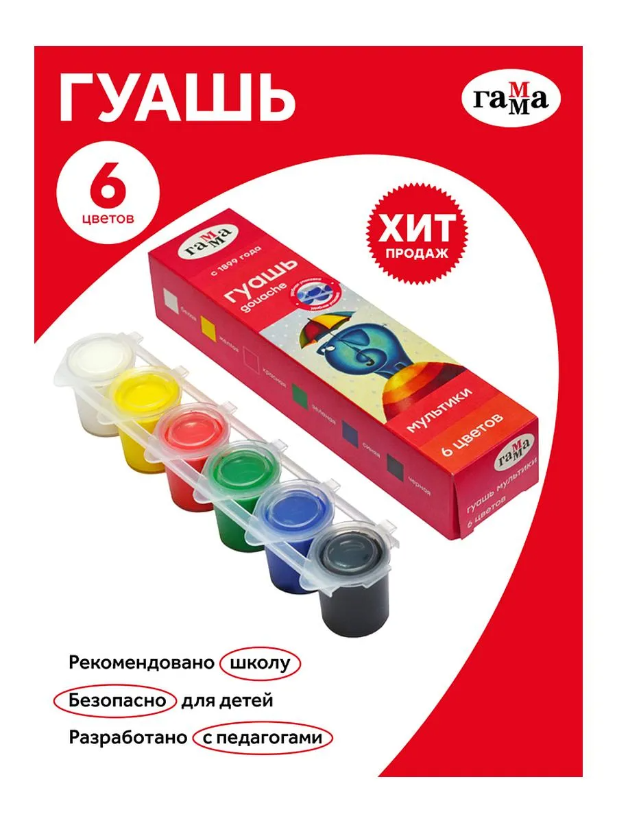 Натали. Гуашь "Гамма" 6 цветов 60935.