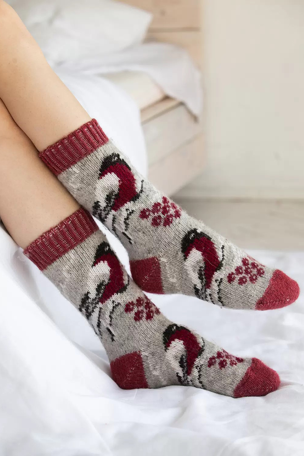 Натали. Носки шерстяные женские Снегири.