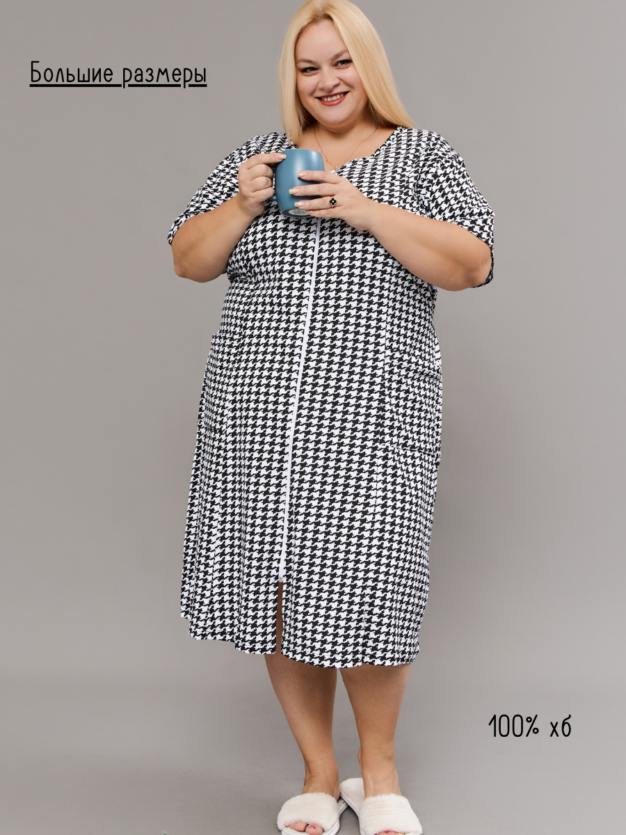 Натали. Халат домашний на молнии больших размеров Х-01 гусиная лапка.