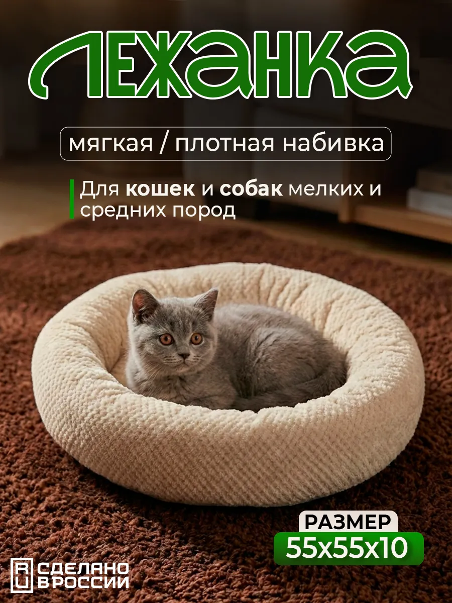 Натали. Лежанка для кошек и собак мягкая, круглая с бортом LDZkr, велсофт, Bio-Line.