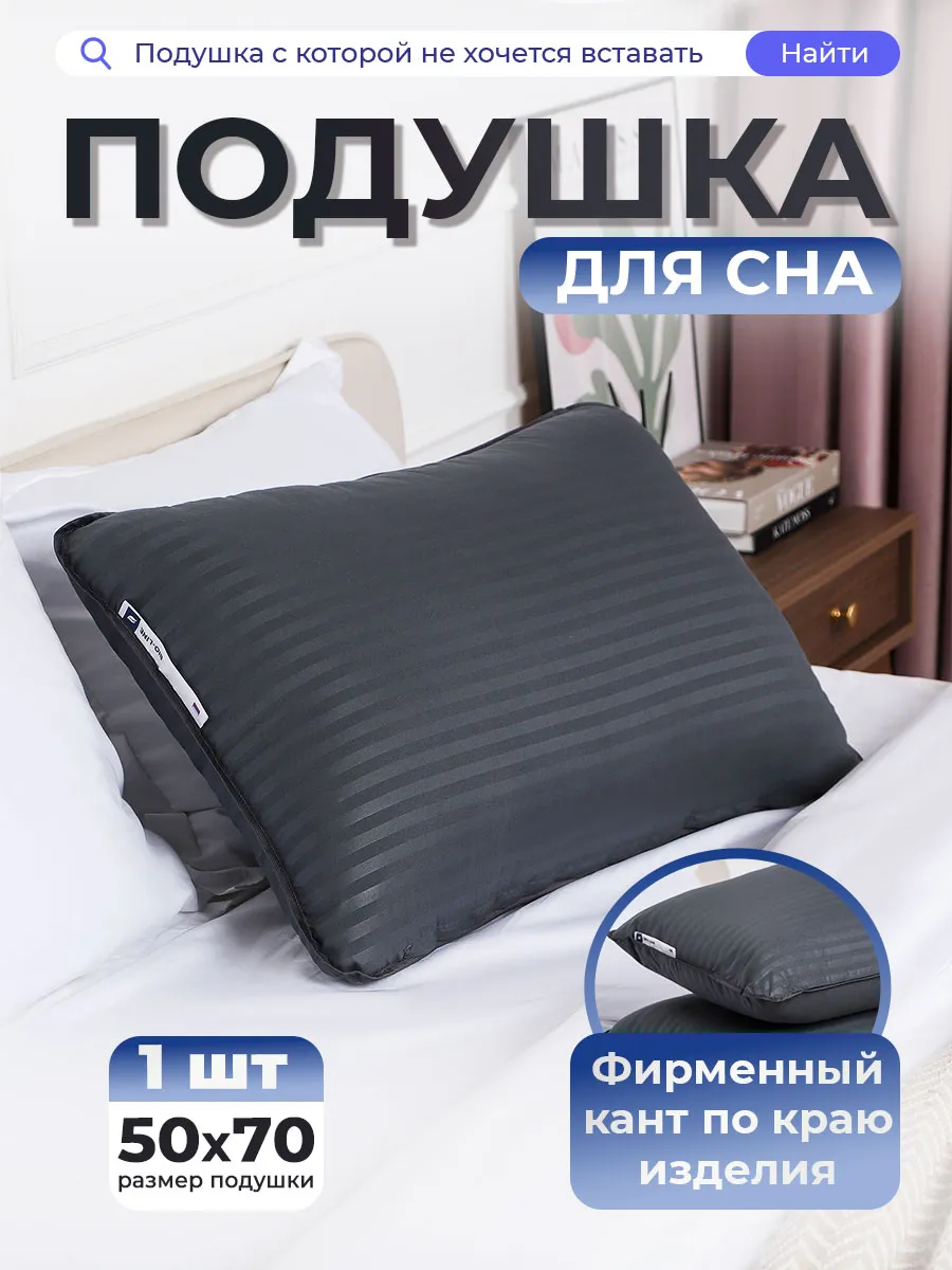 Натали. Подушка 50х70 для сна PM, сатин, полиэфирное волокно цвет графит.