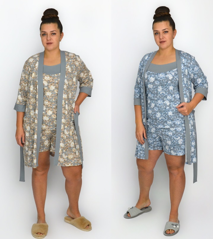 Сибирский дом белья. C1420 Пижама женская (халат,топ+шорты) ВИСКОЗА (р.44-52) ГОМАНИ.