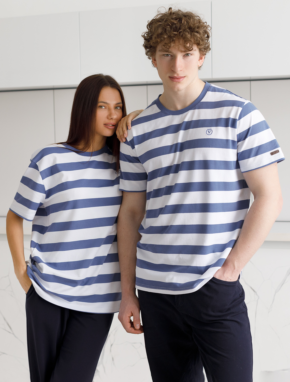 Vilatte. Футболка из фактурного материала "пике" U49.032 светло-синий - белый.