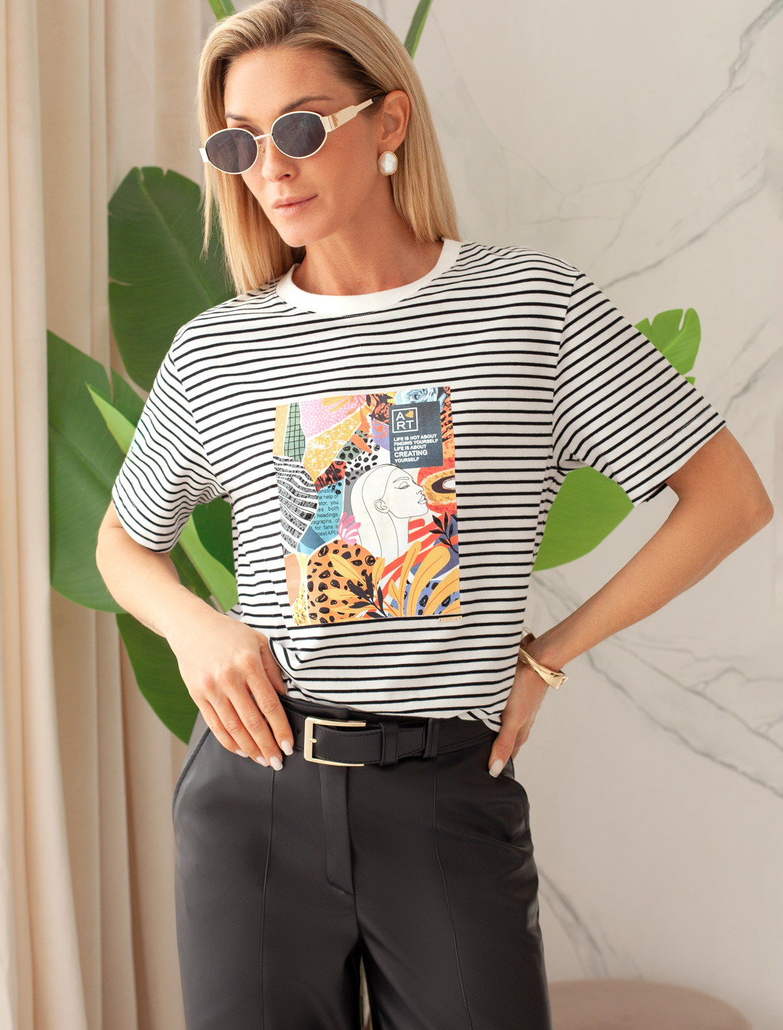 Vilatte. Футболка из премиального хлопка с авторским принтом D49.989 белый-черный_art poster.