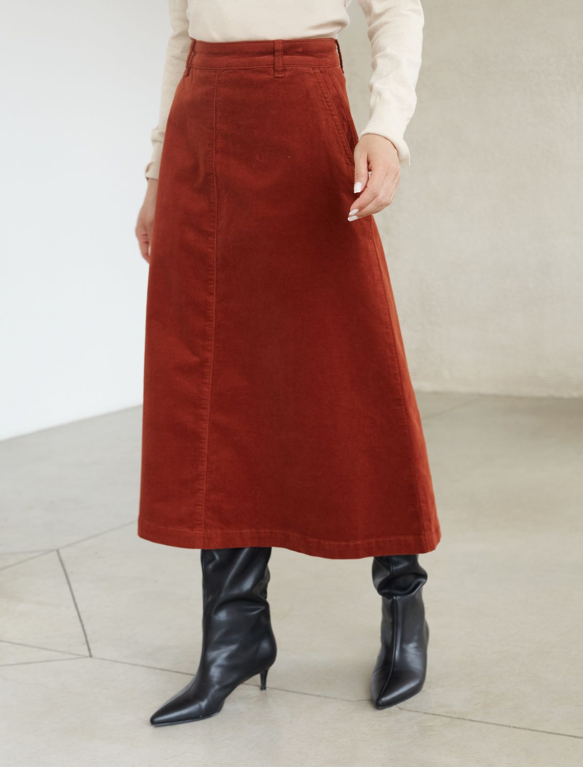 Vilatte. Юбка из эластичного микро-вельвета D26.200 терракотовый.