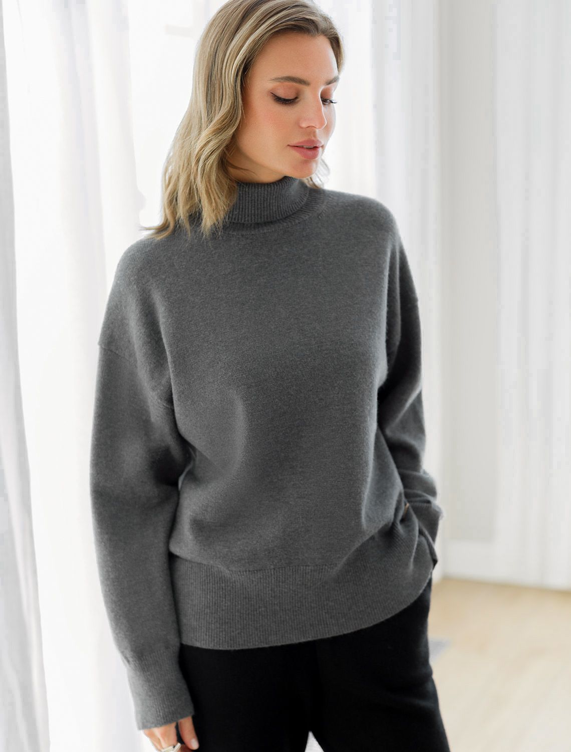 Vilatte. Свитер из пряжи с кашемиром D34.206 темно-серый меланж.