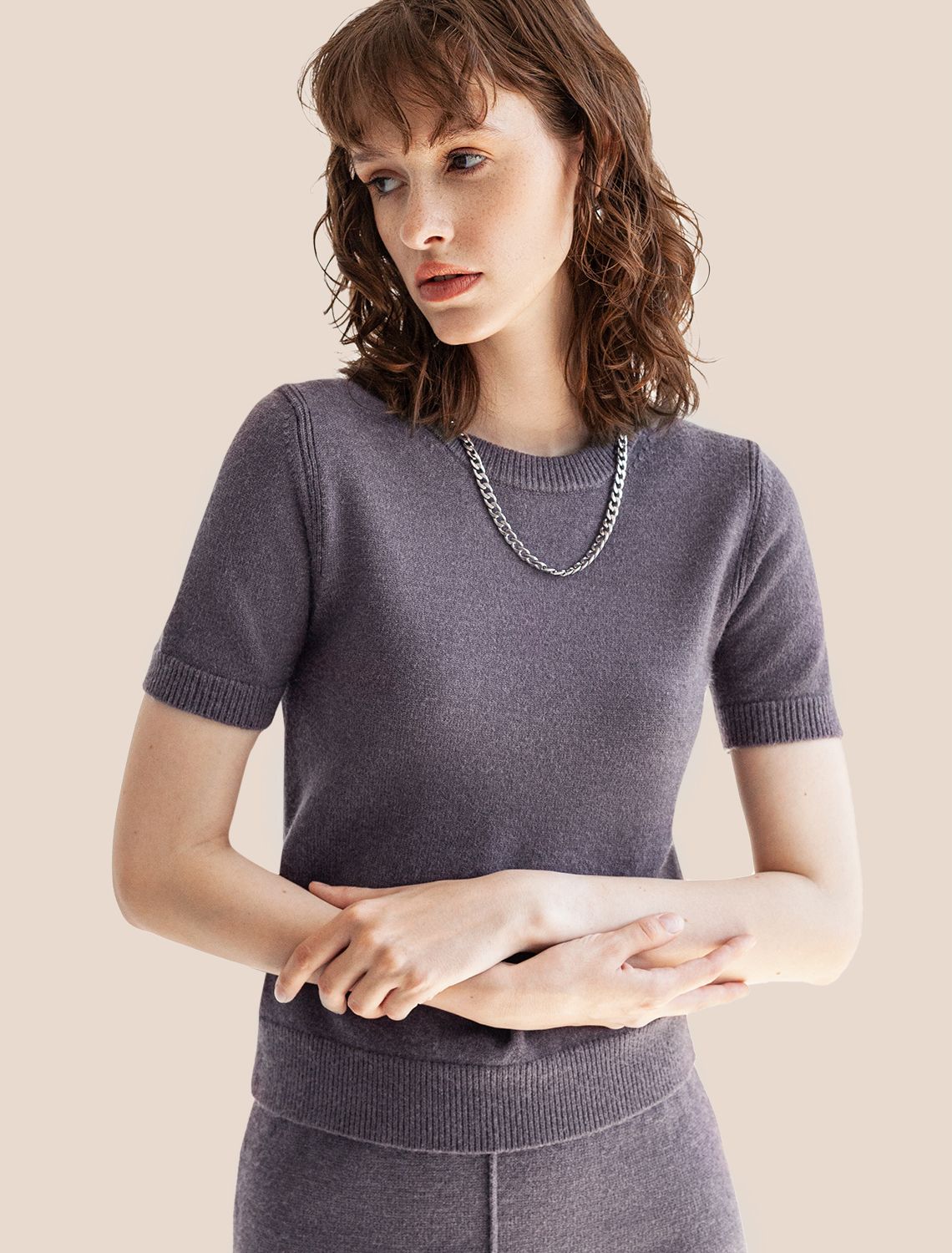 Vilatte. Джемпер из пряжи с кашемиром D39.308 серый меланж.