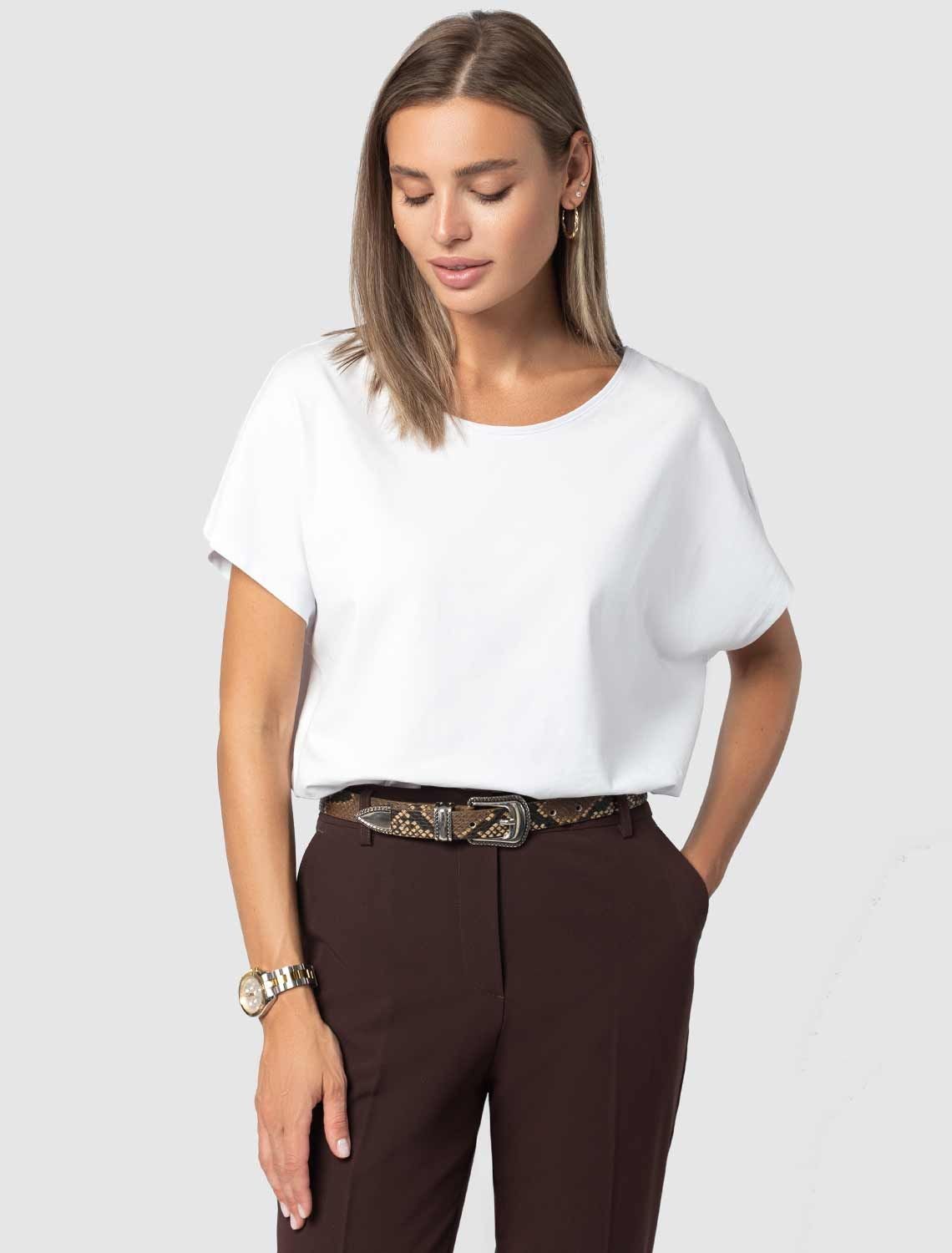 Vilatte. Футболка с цельнокроеным рукавом из премиального хлопка с эластаном D49.933 белый.