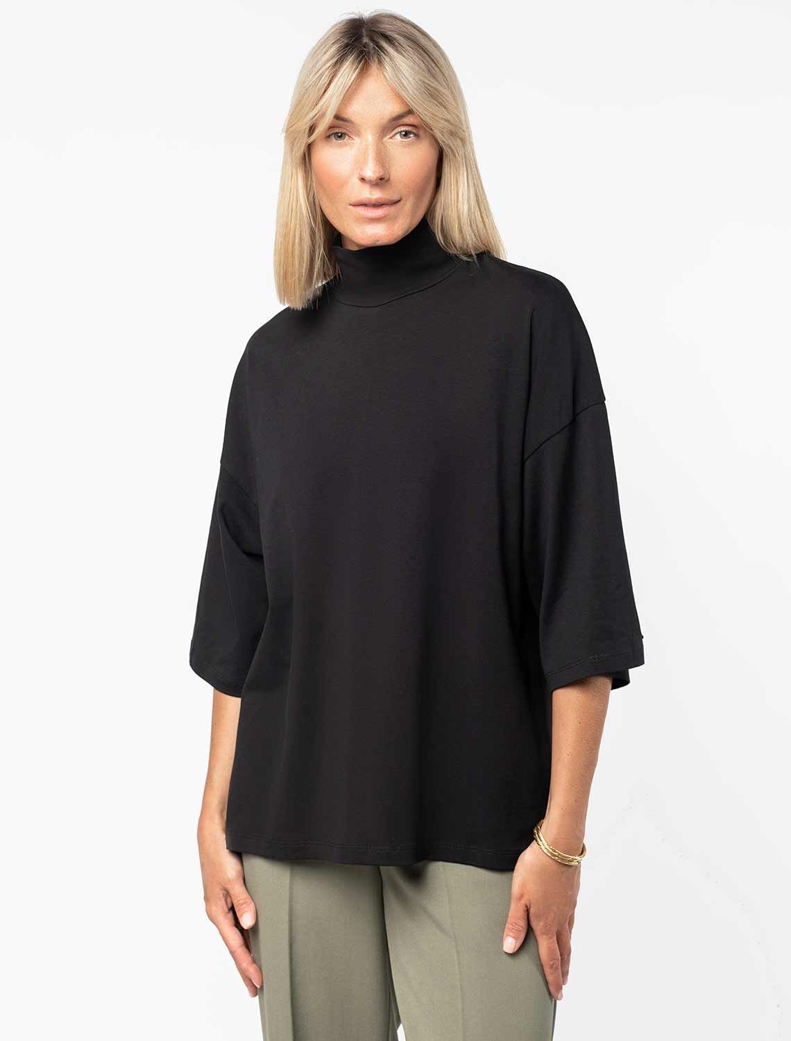 Vilatte. Джемпер-водолазка over-size из премиального хлопка D49.934 черный.